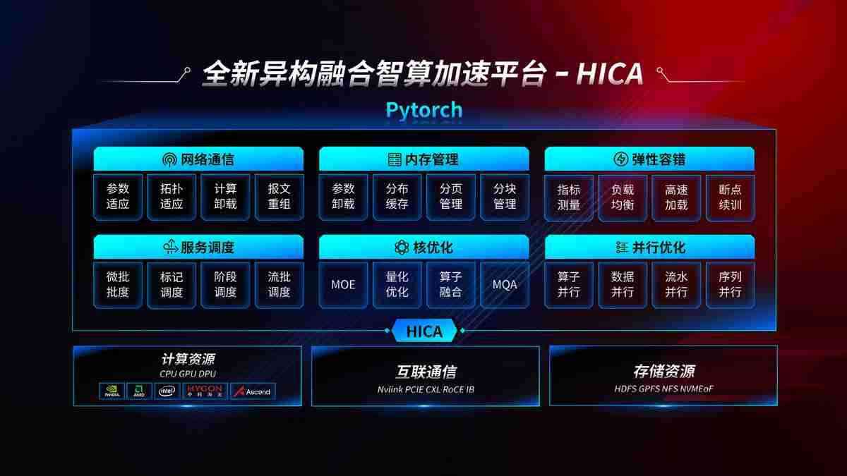 通过自研的服务层、、、中间适配层、、、、以及调度编排算法,,,采用数据并行、、、、模型并行等多种并行方式,,,,把并行计算任务进行有效的分解,,使其分别由相应的软件栈和算力资源来承接。。当GPU资源变化,,,HICA可以实时动态调度计算子任务并调整模型拓扑和架构,,,以充分聚合各种算力资源。。